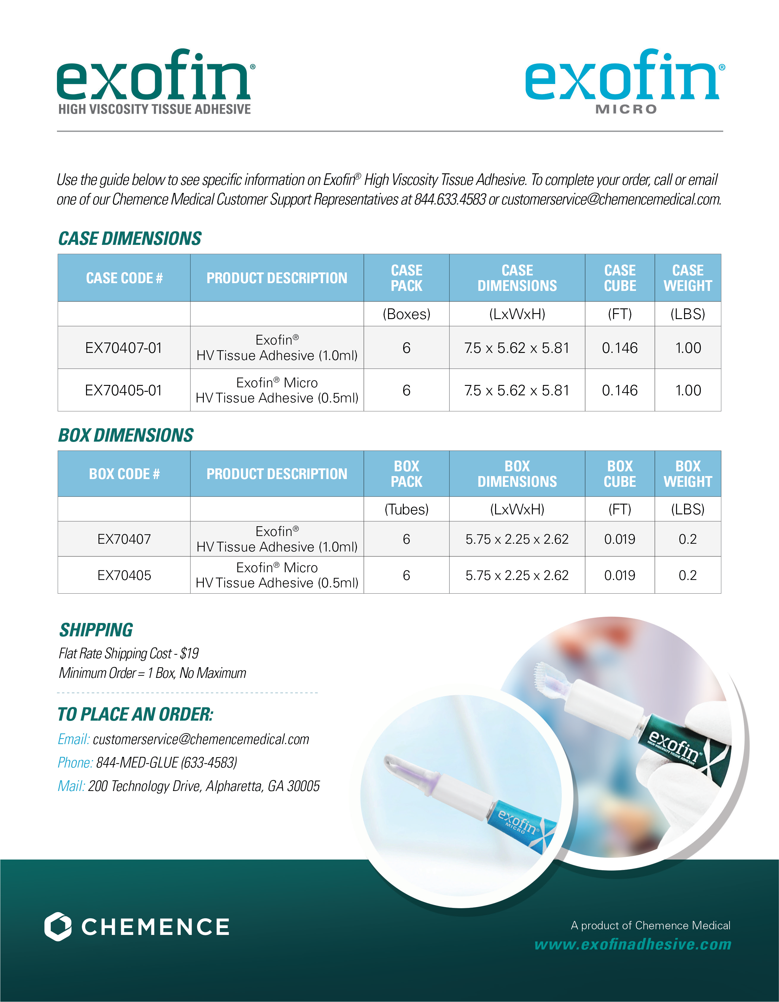 To receive more information or to place an Exofin® ordercontact your Chemence Medical Customer Support Representative at 844-633-4583.Or